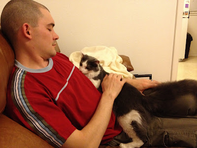 And then there was some cuddling with Darwin. Both kitties have been super affectionate since we haven't been forcing them into a car for hours and hours.